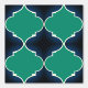 Rich navy blue and peacock green moroccan pattern in 12 inch tiling