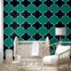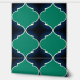 Rich navy blue and peacock green moroccan pattern wallpaper