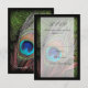Rich peacock feather design features close-up photography image of teal, gold and green peafowl feather lying on a bed of rich, fresh green moss. Perfect for a summer wedding or special occasion. Wedding invitation and matching accessory set. © 2010 www.CustomInvitesOnline.com