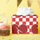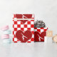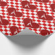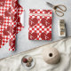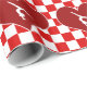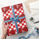 Chequered gymnastics gift wrapping paper with a red and white design. A big red heart has a gymnast silhouette inside!