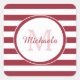 Rich Red Monogram With Contemporary Wide Stripes Square Sticker