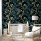 Vintage-inspired wallpaper with deep blue and green floral patterns. Best solution for the interior decor.