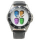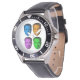My husband loves the watch, he likes the dial, the graphics, the band, and it keeps perfect time.