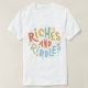 A graphic tee featuring a stylised question mark crafted from sparkling gold coins. Below it, the words "Riches & Riddles" appear in a bold, treasure map-inspired font.