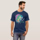 I give wanted to give this a 4 instead of a 5 because these Basic DARK T0shirts run unexpectedly SLIM or Narrow. Which is great if you do not have a potbelly, but I have a paunch. It isn't the shirt's fault that I've got a beer belly. The design and shirt itself is a quality cotton shirt. The color is more of a deep purple, but still a very pretty color. The Basic DARK T-shirts run a bit SLIMMER than the Basic Ts. The neck is a fraction narrower (or seems to be narrower) also. I'm a paunchy middle-aged woman and my neck is 12 inches (31cm) thick and the neckline fell about the same as in the photo of the man, and I had the desire to tug it a bit. So if you're a thick necked man or like loose shirts, be aware these are slimmer shirts. Once I get rid of my lockdown paunch it'll look great. The shirt washed well in cold water with no apparent bleeding. We don't have a dryer, so it hung dry. Did not shrink. Love the colors and the design. The design looks smaller on my shirt than it does on the model on-line. But still, it looks good on the shirt. The printing looks as it does on the model, just the size seems fractionally smaller. Washed garment in cold water, hung dry and design appeared unaffected.