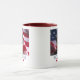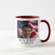 This coffee cup has a photo of Republican Governor Rick Perry in front of an American flag waving in the wind.