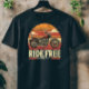 Here's another trending vintage-style t-shirt design featuring a retro sunset landscape with a sunburst background and the phrase "ride free." Let me know if you’d like any changes! ✨