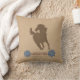 Any of the girl or lady horse lovers will adore this pillow! A soft light brown with a deeper brown in the silhouette of a prancing horse and below it to blue flowers that appear to be made out of yarn and the words "u wish u could ride like a girl" while the reverse side of the pillow is covered with the same soft brown and a repeating pattern of horse shoes in blue and horse silhouettes in deeper brown.