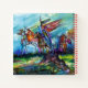 Mediaeval knights with horses ,colourful and expressive contemporary figurative painting in vibrant blue,red,green white,brown colours,watercolor by Alessandro Lumini 1989 Inspired from the legend of King Arthur and the Knights of the Round Table .This cool and artistic design is also a beautiful gift for Christmas and special occasions.