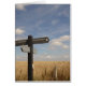 Card with photo of ridgeway path sign on wooden post in Oxfordshire countryside with blue sky, England.