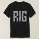 The design on the front of this shirt spells out "RIG" in tiny little skulls.