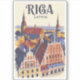 Riga retro vector travel design. Riga, the capital of Latvia, is a captivating mix of Gothic spires, cobblestone streets, and Art Nouveau elegance.