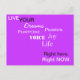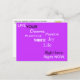 The "Right Here. Right Now." Design by Illustrator April McCallum Features Inspirational Words on a Vibrant Orchid Coloured Postcard. Text Reads: "Live Your Dreams Purpose Passion Voice Joy Life Right Here Right Now"