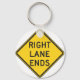 This design is a right lane ends road sign. The sign is yellow with black writing on it. This right lane ends road sign design looks great on this Keychain