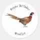 Ring-necked pheasant bird cartoon illustration classic round sticker