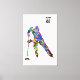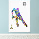 Watercolor-style artwork of a male ringette player in motion, holding a stick in a dynamic stance. The expressive splashes of vivid colours capture movement and energy, creating a striking visual effect. Ideal as a stretched canvas print for sports-themed interiors or contemporary art collections.