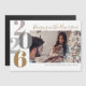 Affordable custom printed magnetic holiday cards with simple templates for customisation. Announce your holiday season engagement with this modern minimalist New Year photo card. The design features large typography with the new year date and "Ringing in the New Year" headline in muted mauve, grey and gold colours. Personalise it with your photo and custom text. Use the design tools to choose any fonts and colour, add more photos and create a unique one of a kind New Year photo magnet.