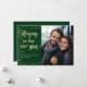 Ringing in the New Year ! Modern, green & gold, customised photo engagement card. Perfect for all couples who want to get engaged at Christmas, New Year's Eve, at the turn of the year and to send tickets on this occasion. Photo and text can be personalised. The template is also very useful as "Save the Date" card.