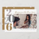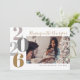 Affordable custom printed holiday cards with a simple template for customisation. Announce your holiday season engagement with this modern minimalist New Year photo card. The design features large typography with the new year date and "Ringing in the New Year" headline in muted mauve, grey and gold colours. Personalise it with your photo and custom text. Use the design tools to choose any fonts and colour, add more photos and create a unique one of a kind New Year photo magnet.
