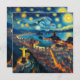 This beautiful design is a perspective of Rio De Janeiro with the Christ The Redeemer Statue in the style of Vincent Van Gogh's Starry Night.