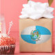 Wish it had some lettering on it, but such a cute design. No lettering. Another one of the few that come in oval without sacrificing graphics.