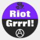 black rose, circle-a, "riot grrrl! round sticker, purple & black