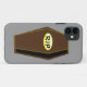 This awesome iPhone case features a creepy coffin made from wood with gold edging. The coffin lid is slightly open revealing only darkness within. The gold plaque on the front of the coffin has spooky black text on it that says RIP, giving no clue who or what might be lurking inside. This fun yet sinister coffin is ideal for Halloween. The bleak grey background acts to draw the eye of the observer towards the coffin of doom.