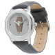 This awesome watch features a creepy coffin made from wood with gold edging. The coffin lid is slightly open revealing only darkness within. The gold plaque on the front of the coffin has spooky black text on it that says RIP, giving no clue who or what might be lurking inside. This fun yet sinister coffin is ideal for Halloween. The bleak grey background acts to draw the eye of the observer towards the coffin of doom.