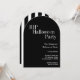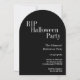 This RIP theme, black and white Halloween party design features stylish typography, a chic modern design in a spooky gravestone shape with a black and white stripe. Perfect for hosts planning a spooky, RIP themed Halloween celebration. Perfect for a timeless Halloween RIP themed party invitation!