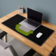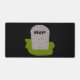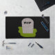 This awesome desk mat features a grey tombstone with RIP in dripping black text on it, standing on a patch of green grass. Befitting of this morbid design the background is black.