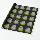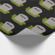 This awesome wrapping paper features a grey tombstone with RIP in dripping black text on it, standing on a patch of green grass. Befitting of this morbid design the background is black.