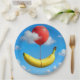 Ripe Banana Floating In Sky with Red Balloon Paper Plate