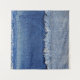 Denim jeans background. Ripped denim fabric with bleached scratch, text place, copy space. Washed denim fabric with fringe edge