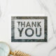 This bold, versatile design features a photo background you can change to your own picture if you like. The image I used is a pol of peaceful rippled water filled with smooth grey stones. The reflection adds to the mood of serenity. Overlaying the photograph, I've placed a translucent rectangle that has "THANK YOU" cut out using a bold sans-serif font. The back was left blank for your personal message.