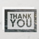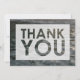This bold, versatile design features a photo background you can change to your own picture if you like. The image I used is a pol of peaceful rippled water filled with smooth grey stones. The reflection adds to the mood of serenity. Overlaying the photograph, I've placed a translucent rectangle that has "THANK YOU" cut out using a bold sans-serif font. The back was left blank for your personal message.