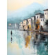 Embark on a tranquil journey through time with our serene wall art. Immerse yourself in the solitude of a lone rower gracefully navigating a peaceful river, surrounded by the timeless beauty of old-style buildings. Let this captivating scene bring a sense of calm and reflection to your space, inviting you to explore the soothing stillness of the moment.