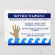 This riptide warning postcard is necessary to warn beachgoers of possible dangerous waves and strong current of the ocean. This beach drowning warning reminds swimmers to be careful when swimming in the sea and to swim parallel to the shore if you get caught in the rip current. Features a reaching hand coming out from the blue water next to the safety message.