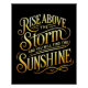 The motivational quote 'Rise Above the Storm and You Will Find the Sunshine' radiates positivity and elegance, set against a sleek dark background with a soft glow enhancing feel.