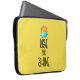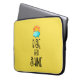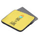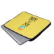 A laptop sleeve with a cute typographical design. A fluffy cloud and an orange sun.