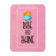 A flexible magnet with a cute typographical design. A fluffy cloud and an orange sun.