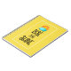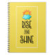 A spiral notebook with a cute typographical design. A fluffy cloud and an orange sun.