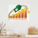 Make a statement about the current economic climate with this striking poster featuring a green fuel pump nozzle and a rising golden bar chart. The bold graphic design perfectly captures the impact of high gas prices and inflation on everyday life. This high quality print is ideal for offices, classrooms, or home decor, serving as a modern visual representation of market trends and the energy crisis. Available in various sizes to suit your space, this poster adds a professional yet relatable touch to any wall.