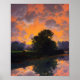 A beautiful landscape by Maxfield Parrish featuring a lovely sunset.