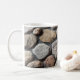 A unique look of river rocks spread across your mug. A virtual rainbow of natural stone.