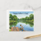 a Father's Day postcard showcasing a peaceful riverbank scene.