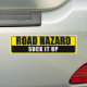 Are you tired of seeing STUDENT DRIVER bumper stickers on every other car on the road? Show them you’re onto their game with this bumper sticker that says ROAD HAZARD - SUCK IT UP ! You can change the background colour!