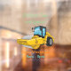 Road roller cartoon illustration window cling