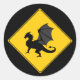 Beware! Dangerous conditions ahead. Fantasy meets reality. Dragon Crossing. Funny sign made in the style of a road sign.