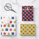 A set of wrapping paper with three different thematic prints for the decoration of gifts for various special events.