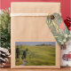 Rectangular souvenir photo sticker of the white gravel road (or strada bianca) to Terrapille agriturismo with cypress trees alongside it in the evening light in the Valdorcia (Orcia Valley) near Pienza in Tuscany, Italy. The road is also called Gladiator Road because the movie The Gladiator was partly recorded here.